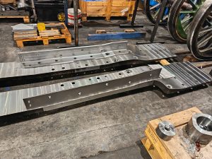 Bogie support brackets waiting final machining. Photo: CCT Archive